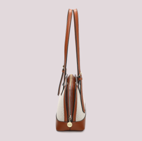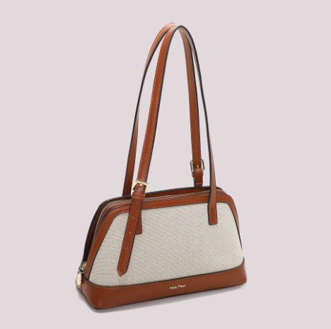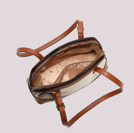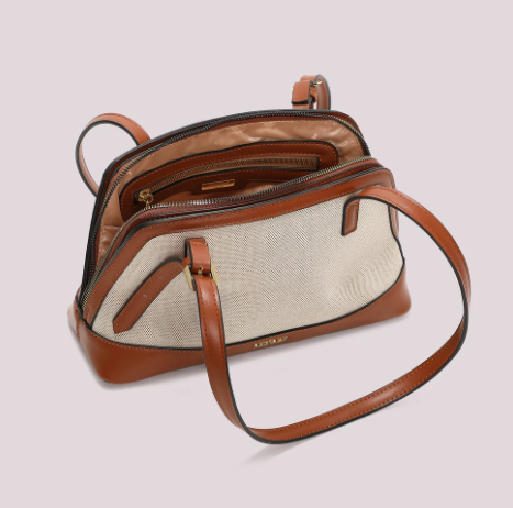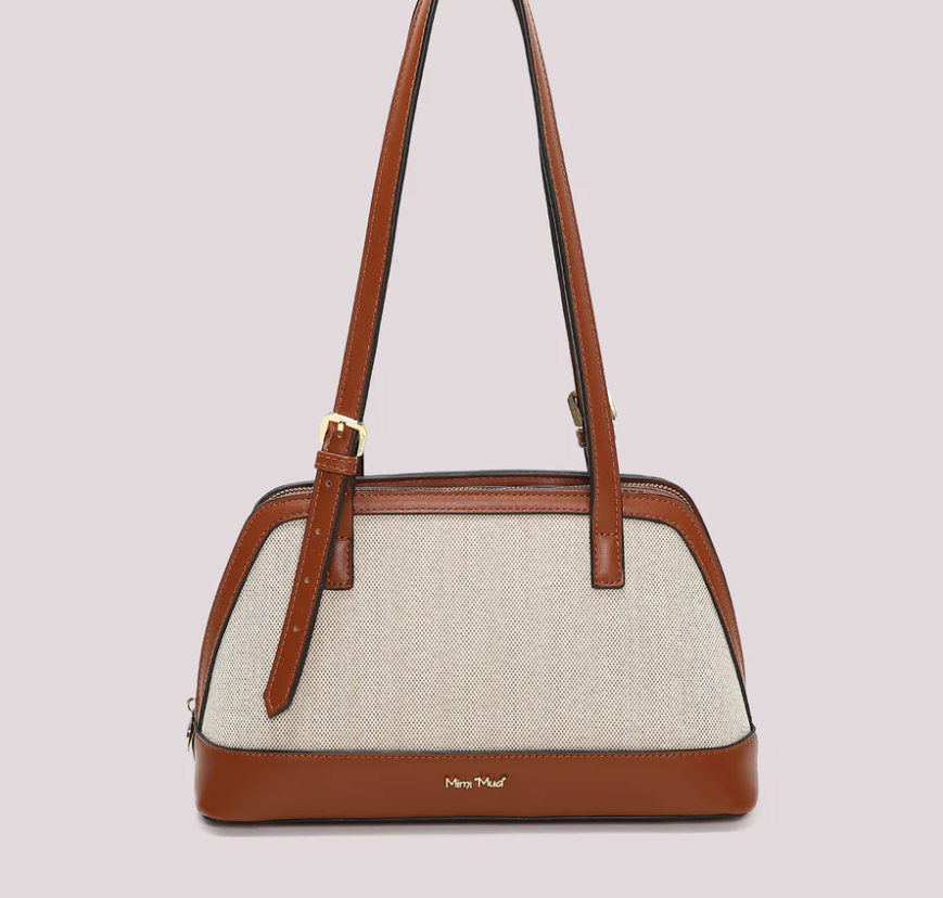 Bolso de lona negro, doble asa regulable, cierre con cremallera, bolsillos interiores.