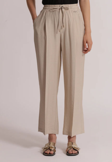 PANTALONES CON DETALLES DE TACHUELAS EN BOLSILLOS, CINTURILLA CON ELÁSTICO Y CORDÓN PARA AJUSTAR.